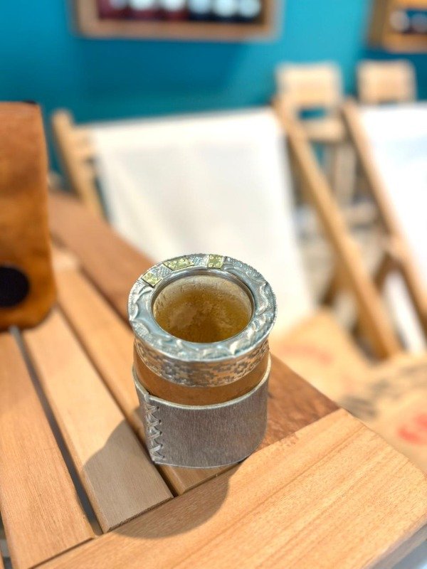 Mate de calabaza con base de cuero y virola de alpaca.